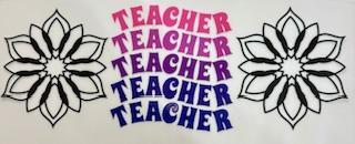 Ombre Teacher & Black Flower On The Sides 4" Decal