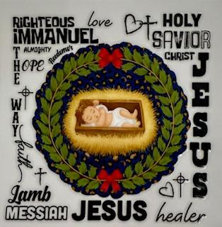 Jesus in the middle of a holiday wreath 4" Decal