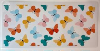 Clear background with pastel butterflies (pink,orange, blue, teal)